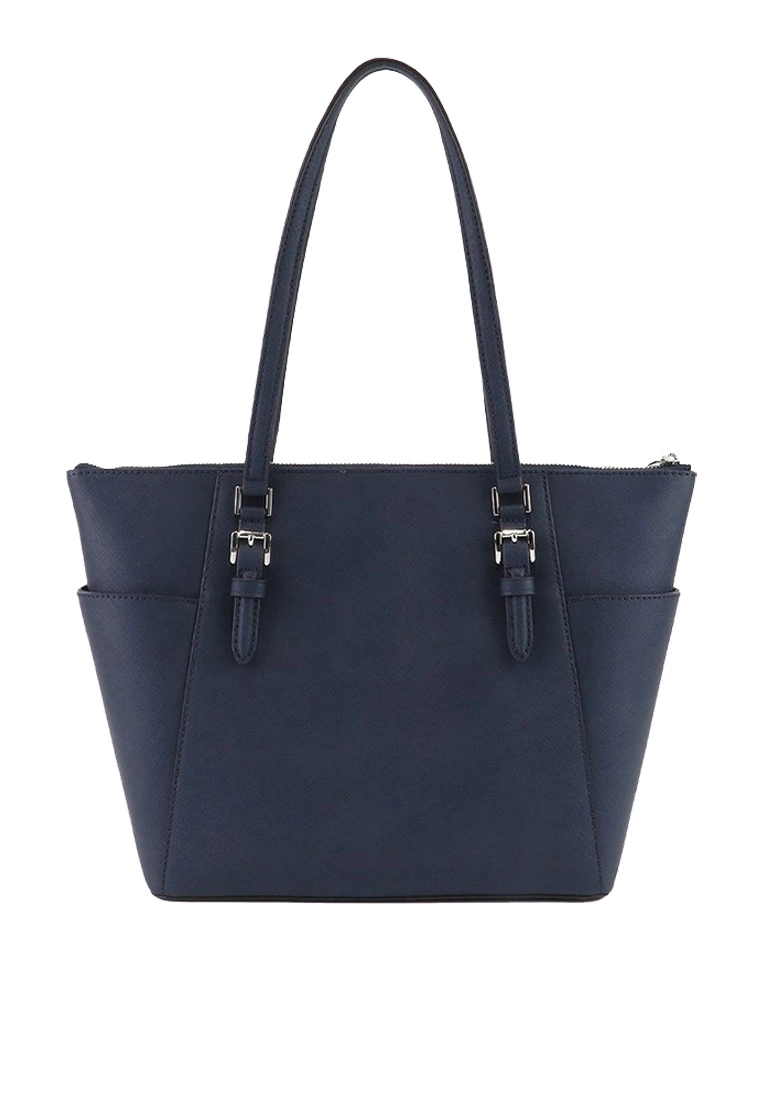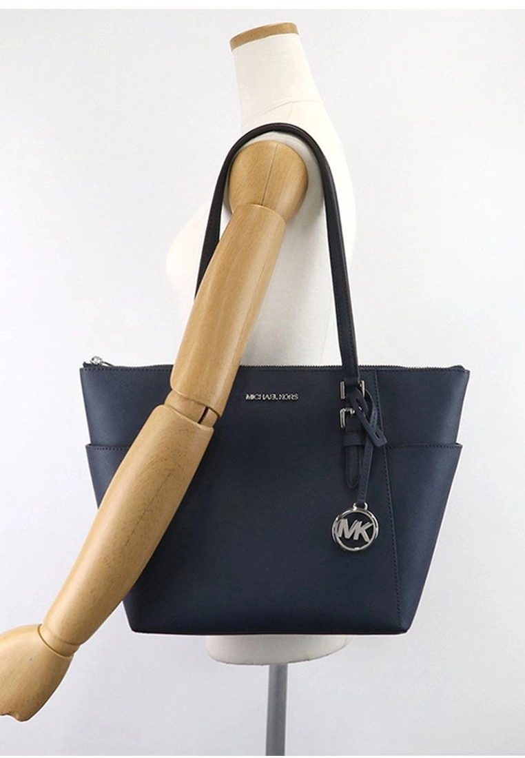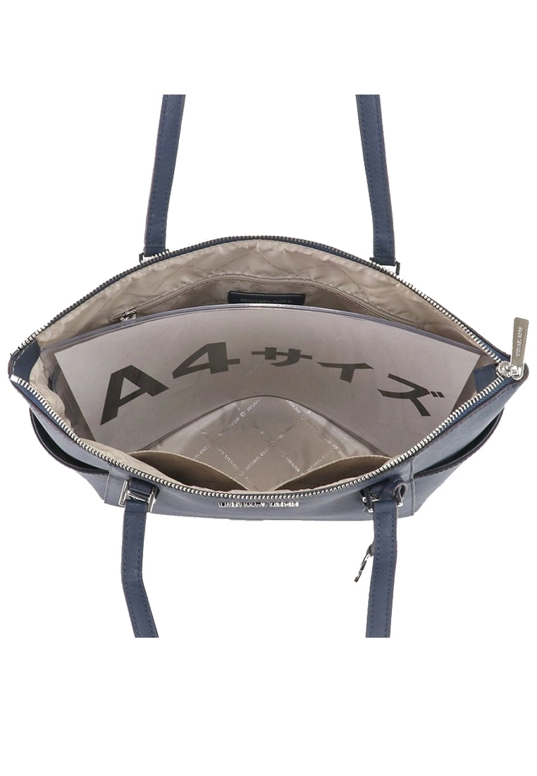 Double shoulder straps with 10″ drop11″W x 10.25″H x 4.5″DInterior 1 zip pocket & 2 slip pocketsExterior slip pockets on each endMK logo signature fabric liningPolished silver-tone hardwareMichael Kors Logo on FrontGergeous luggage leatherZip top closureFabric lining