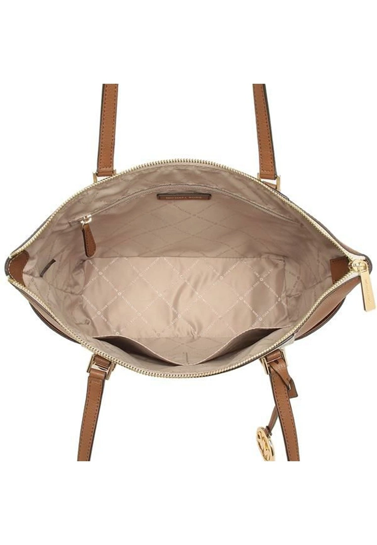 Double shoulder straps with 10″ drop11″W x 10.25″H x 4.5″DInterior 1 zip pocket & 2 slip pocketsExterior slip pockets on each endMK logo signature fabric liningPolished gold-tone hardwareMichael Kors Logo on FrontMk signature coated canvas with geniune leatherZip top closureFabric lining