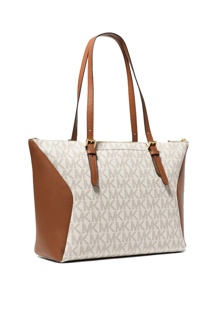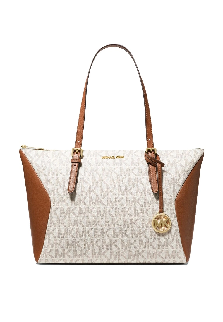 Tote bagLogo-print canvas/faux leather89.4% coated canvas/ 9.6% polyester/ 1% polyurethaneGold-tone hardware16.5”W X 10”H X 5.25” DExterior details: back slip pocketInterior details: back zip pocket, front slip pocketLining: 100% polyesterZip fasteningImportedPacked in Lussocitta Dustbag