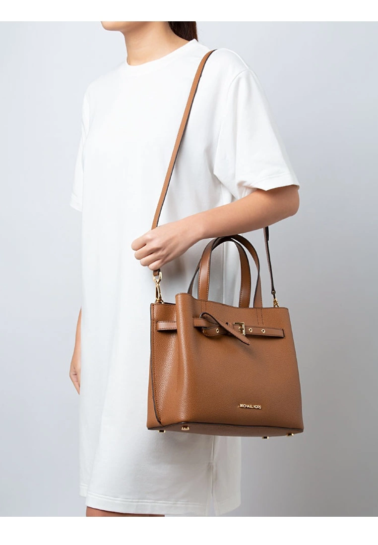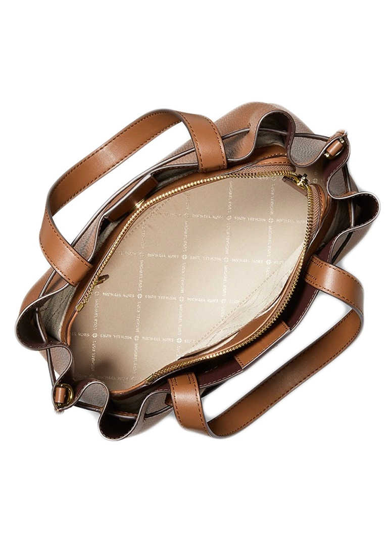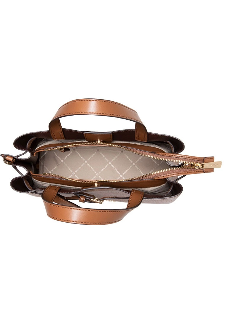 – Exterior details: detachable crossbody strap, front and back snap pockets