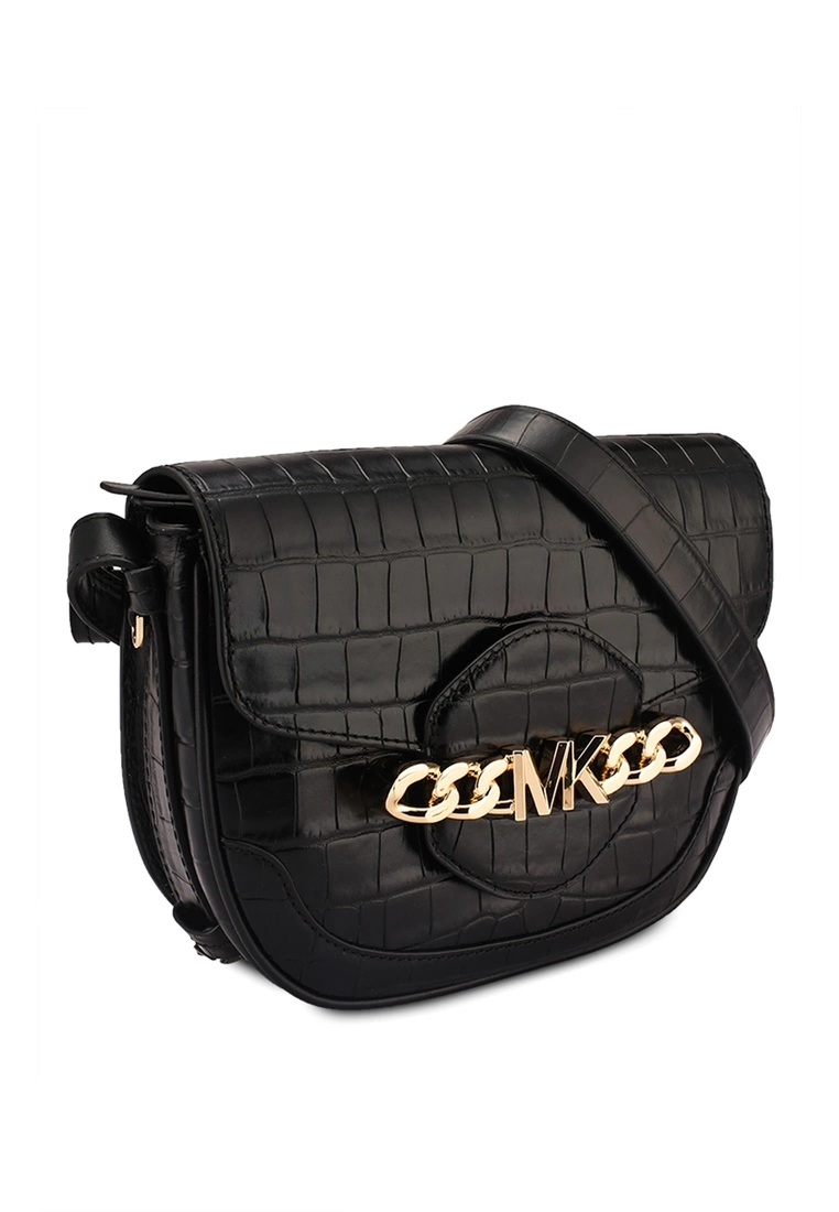 – Monochrome hue leather crossbody bag with croc effect