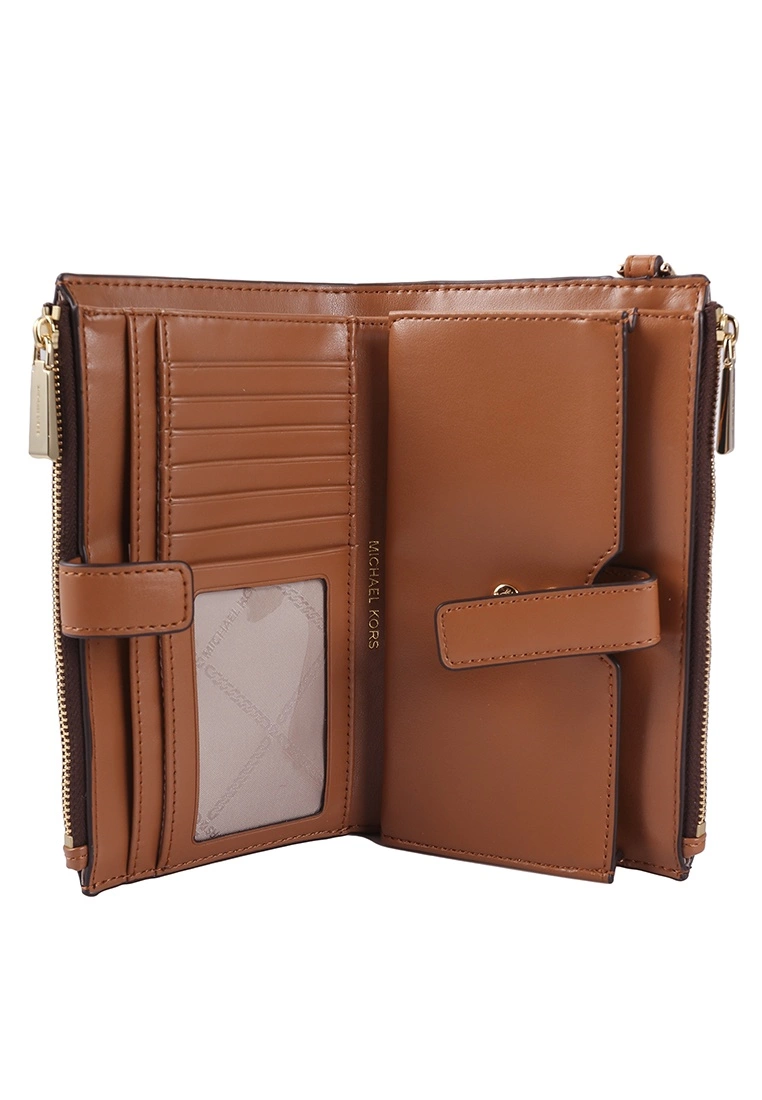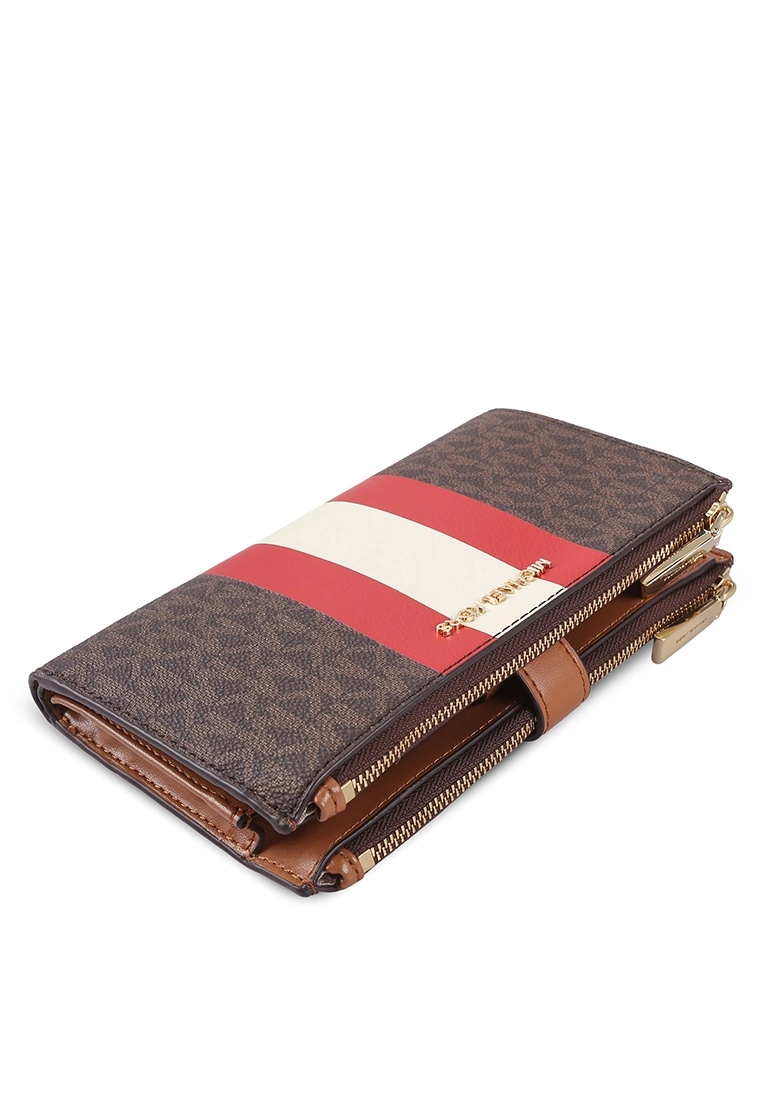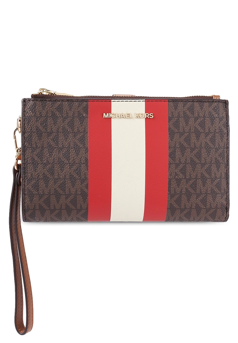 – Allover monogram logo printed double zip wristlet with logo applique