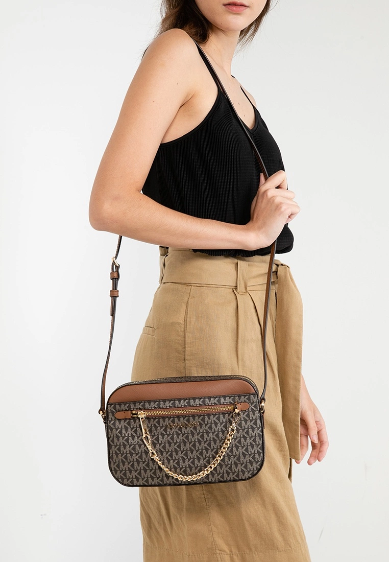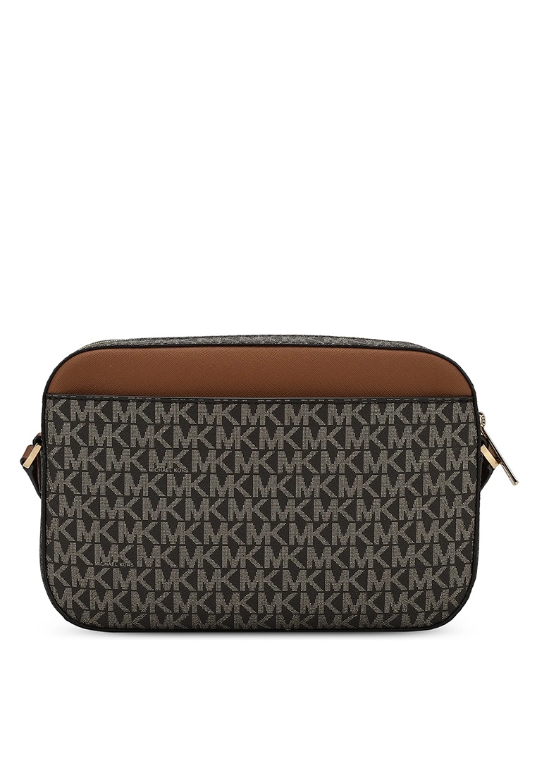 – Monogram print bag with dark-tone leather panel