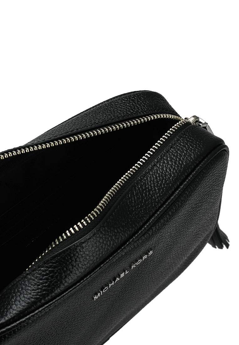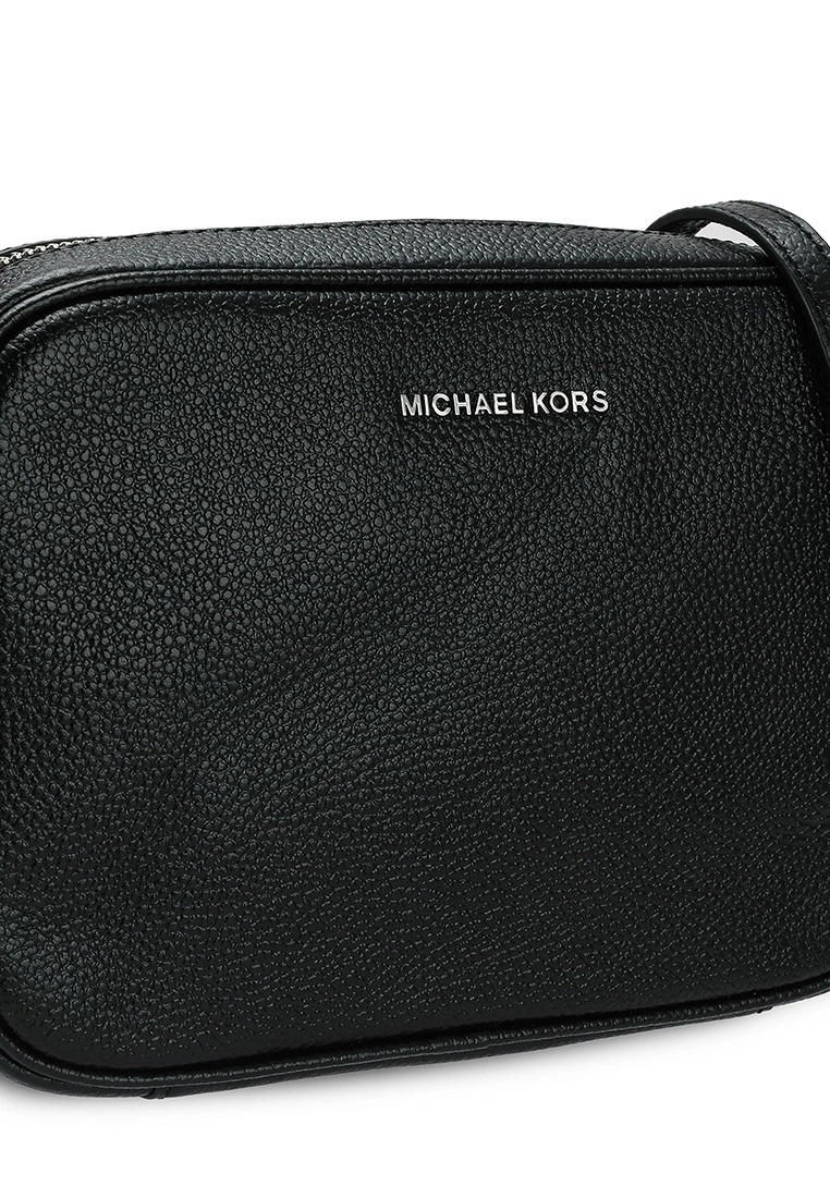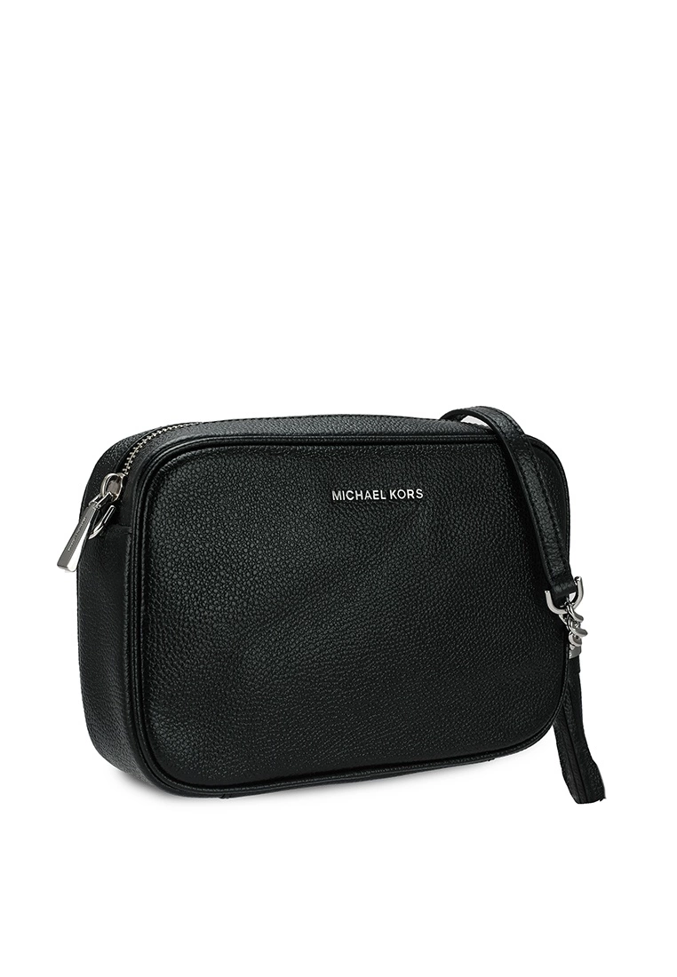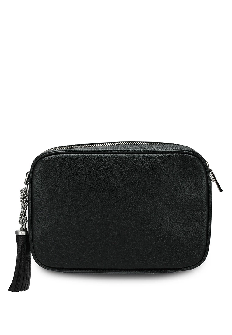 – Solid shade pebbled camera bag with logo applique