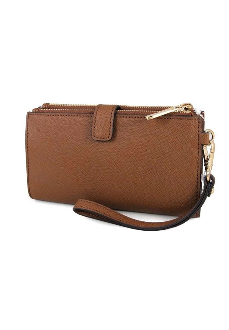Genuine Leather with Gold-tone hardwareSnap closure; linedInterior features zip pocket, 3 inner pockets, and 6 card slots1 ID slotPhone pocket fits up to iPhone plus similar sized phonesLogo plaque on front2 Zip closure compartments18.5cm *11cm *2.8cmRETURN POLICY:Item must be in its ORIGINAL PURCHASED CONDITION, including the original product packaging(Gift box, Dust bag, Gift paper bag etc), manufacturer’s containers, documentation(Receipts and Invoices), warranty card(s), manual(s), and all accessories. All packaging must be unmarked and not defaced in any manner. Missing of any original product packaging will cause return rejection.Item purchased as part of a set or multi-item pack has to be returned as a whole set.Any item that you received with tag(s) attached must be returned with the same tag(s) intact. Security Tag MUST NOT BE REMOVED. All handbags returned without security tag will be rejected.