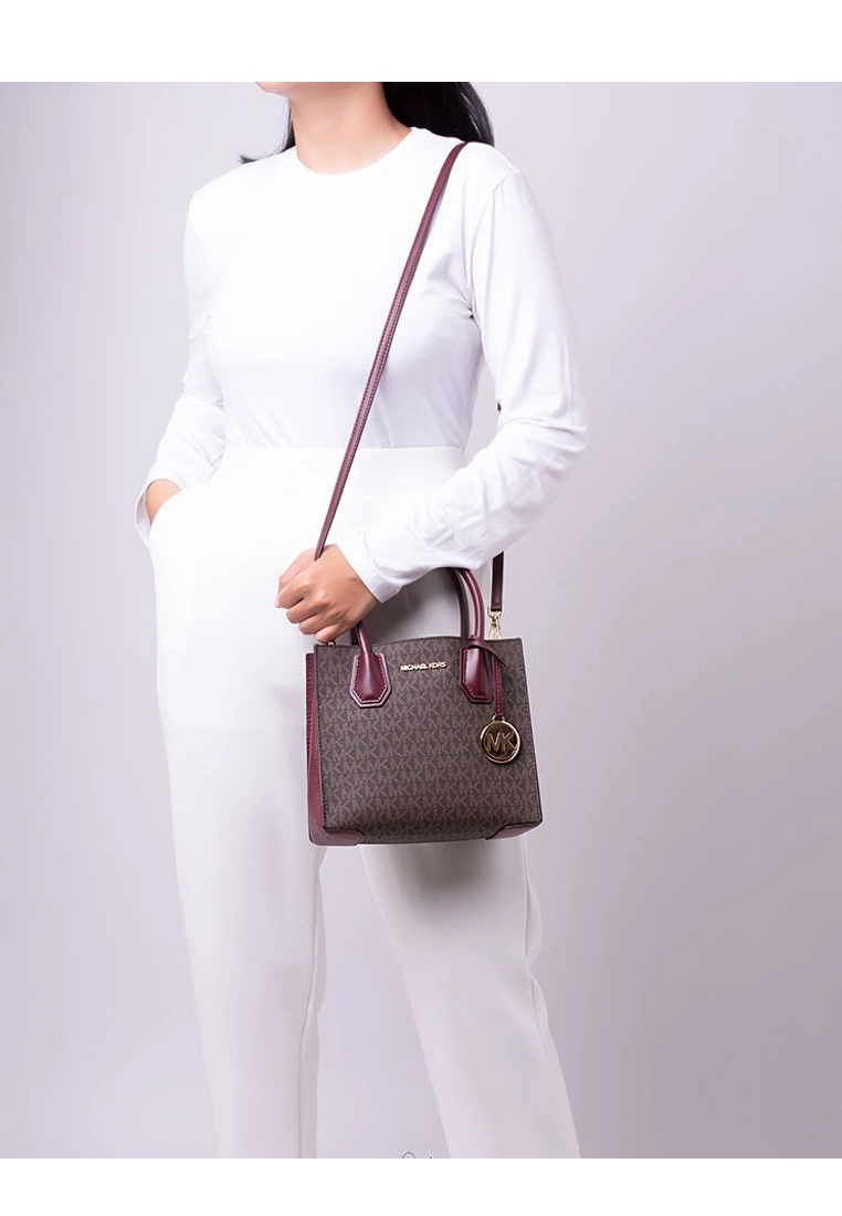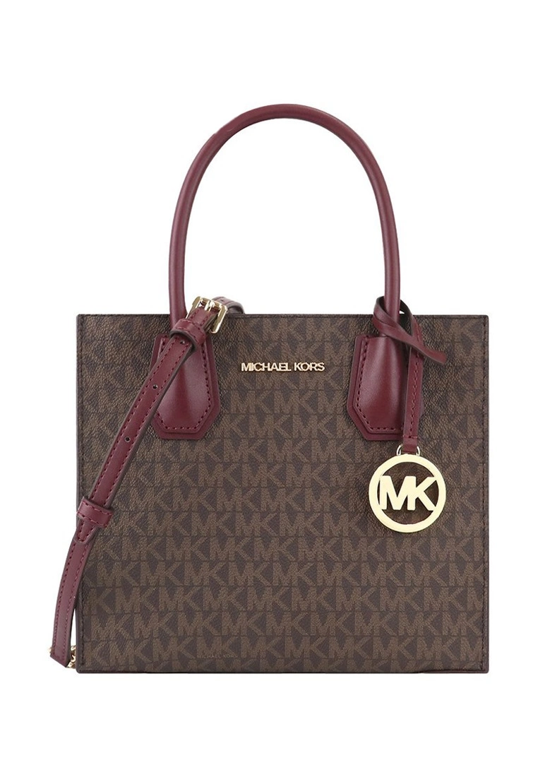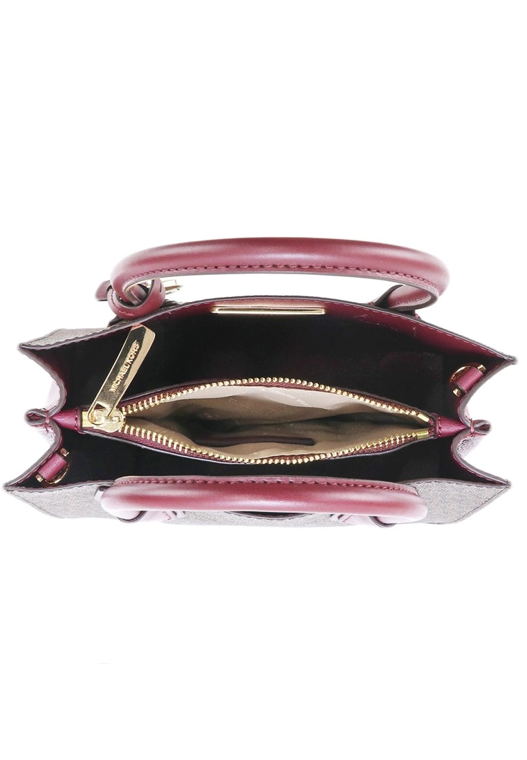 – Interior details: 2 open compartments, center zip compartment, 3 card pockets