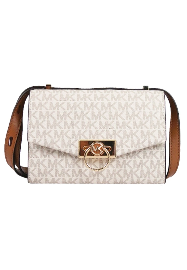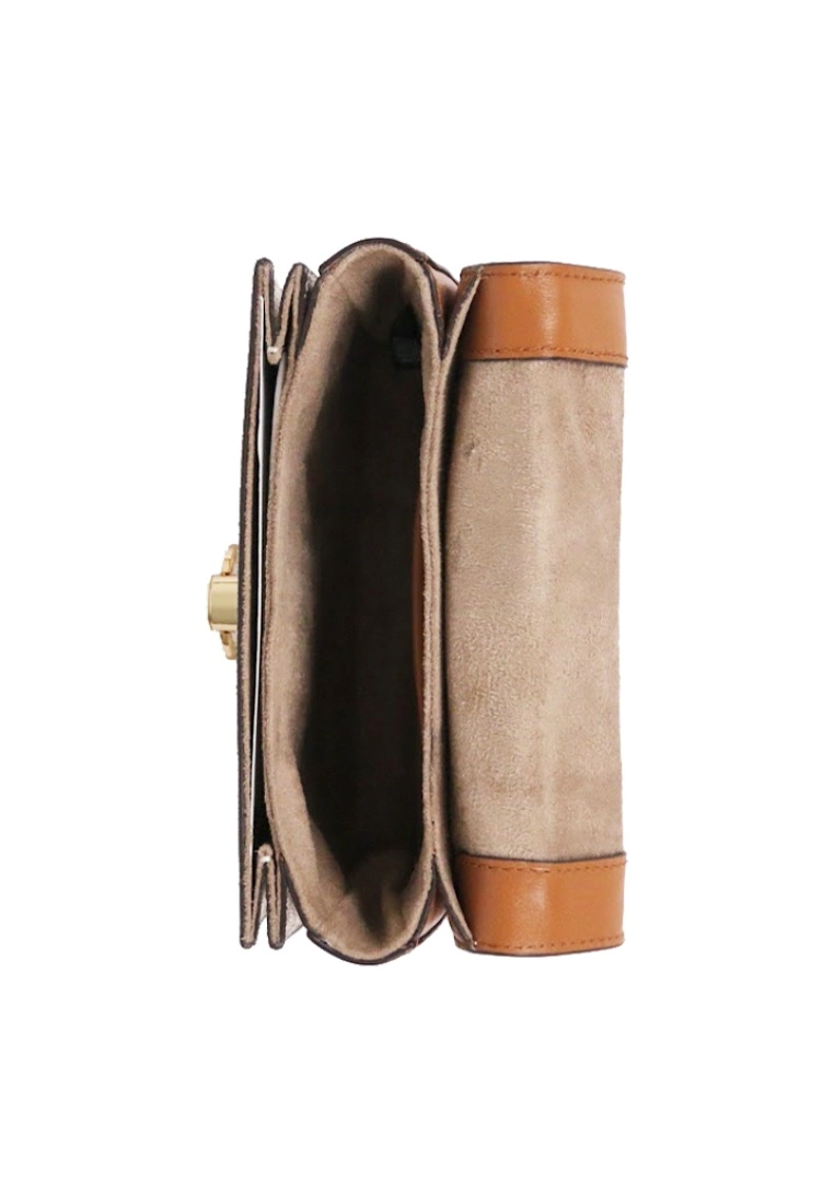 Gold-tone hardware, exterior back slip pocket, 3 interior card slots and a back slip pocket